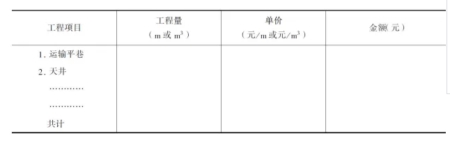 3.采切工程量及采切比 采切工程量可列表計算。設(shè)計中,當(dāng)?shù)V塊作一個步驟回采時,只算整個礦塊的采切比,當(dāng)?shù)V塊分步驟回采時,則應(yīng)分別計算礦房與礦柱的采切比。對于開切割槽和拉底的工程量,采切比中只算為開切割槽和拉底而開創(chuàng)自由面和補償空間(如切割天并、拉底平巷、拉底橫巷)的工程量,不計切割槽和拉底層其余部分的工程量,其余部分屬于切采,歸到回采礦量中。